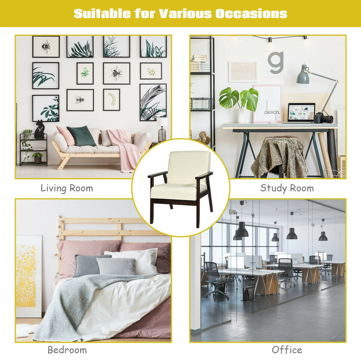 Mid-Century Style Accent Chair with Solid Wood Frame and Soft Fabric Seat, Beige