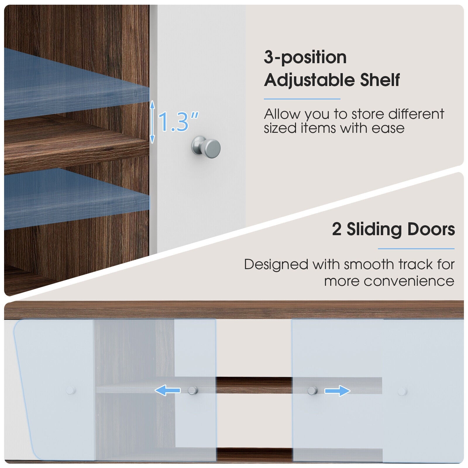 Smooth Sliding Door Design: Two sliding doors glide quietly on the bottom track, allowing easy access to enclosed storage. This helps reduce clutter and keeps your media essentials out of sight for a neat look.