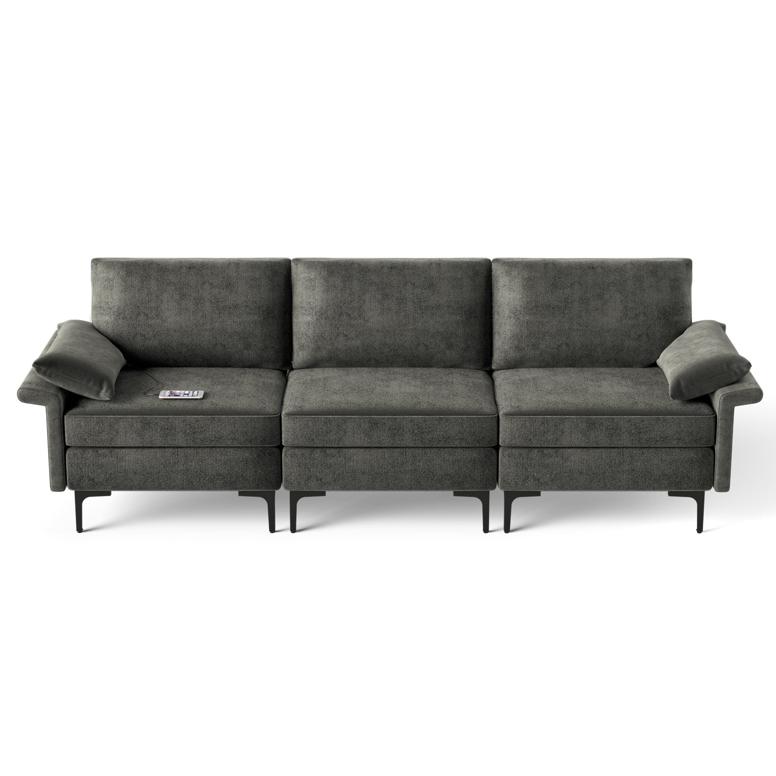 Modern 3-Seat Sofa with Metal Legs, Built-in USB Charging Ports, and Deep Cushions in Grey