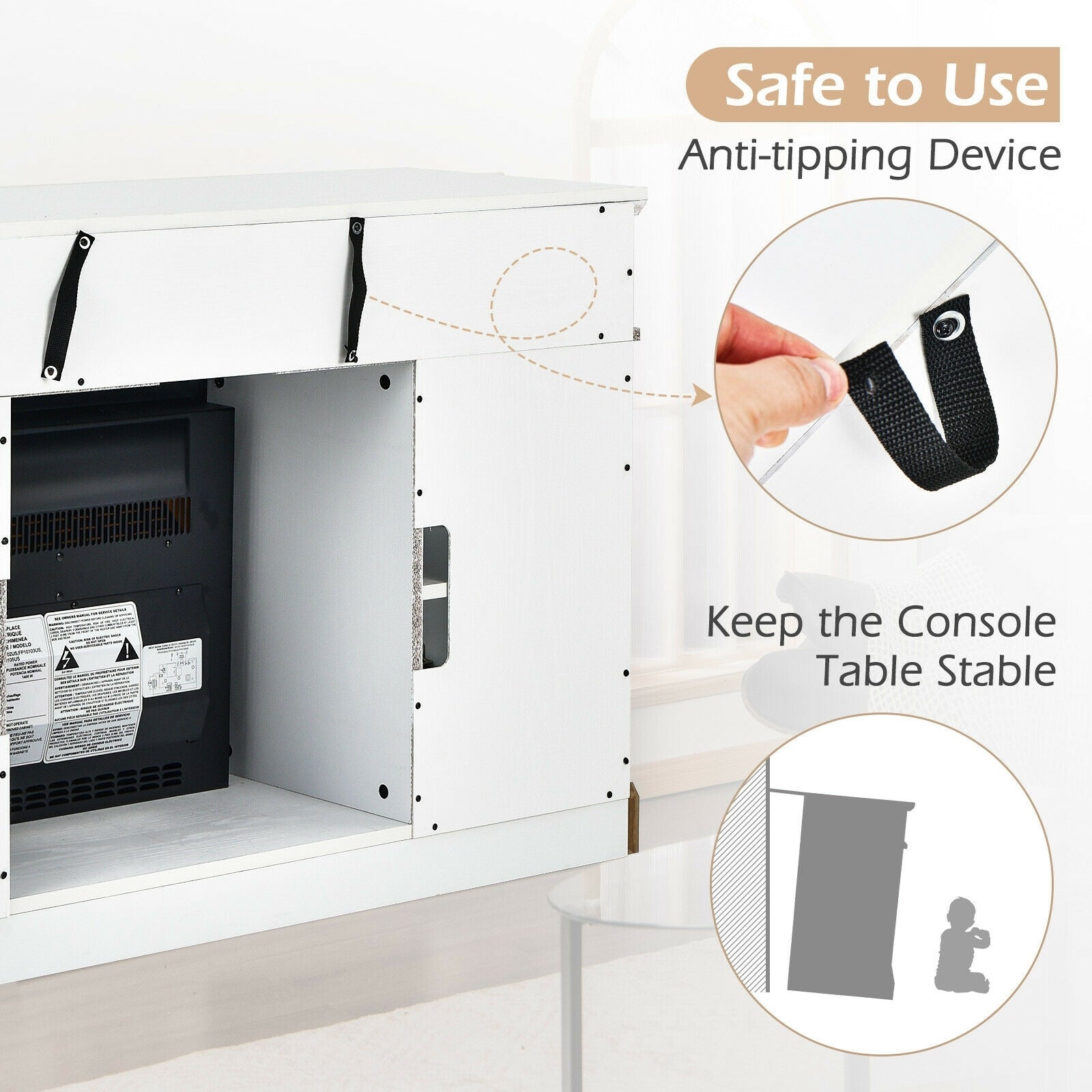 Safety Features: Equipped with overheat protection, this TV stand ensures safety by automatically shutting off the heater if the temperature gets too high. The CSA certification further guarantees high safety standards.