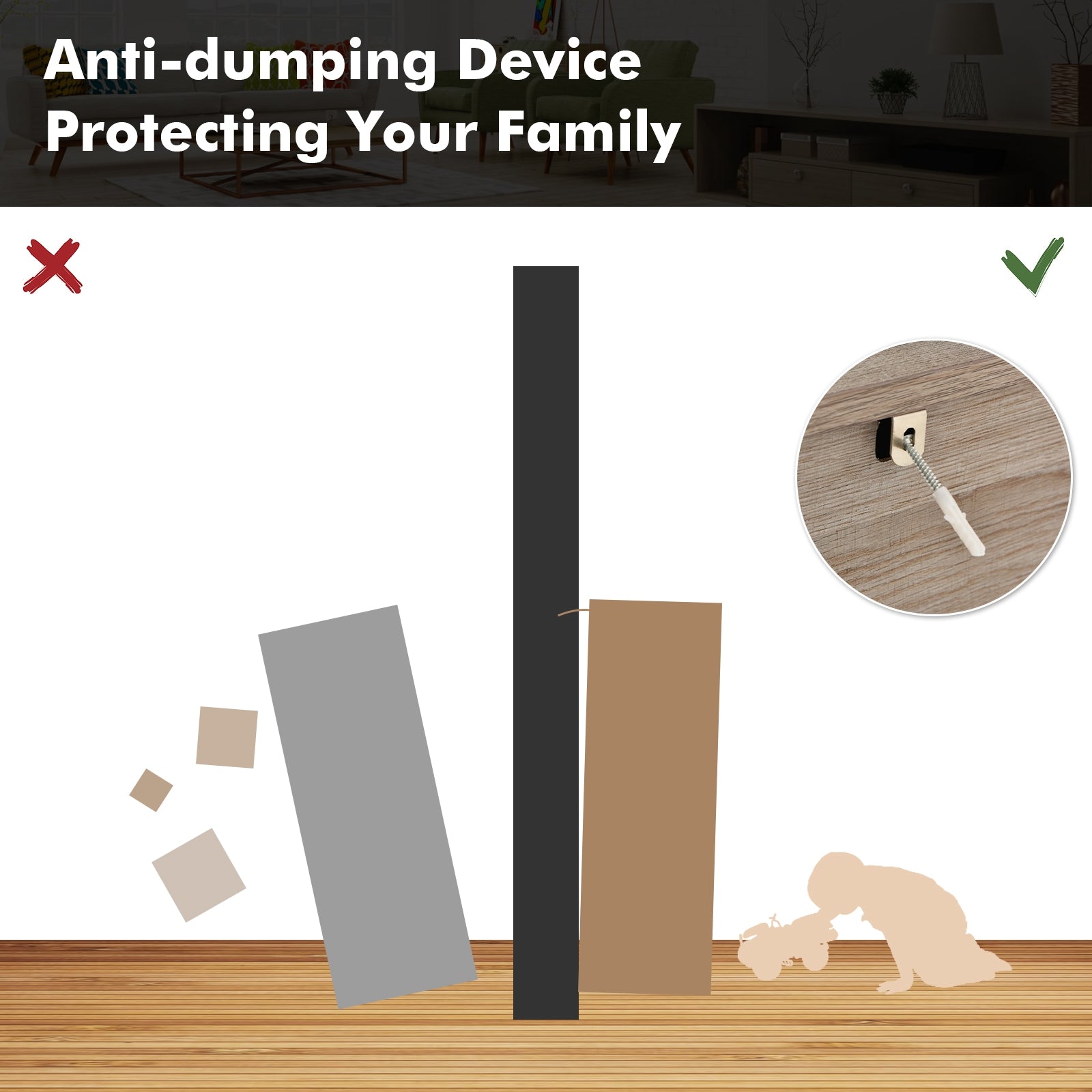 Sturdy and Stable Structure: Made from durable P2 MDF material, this sideboard supports a maximum weight capacity of 120 lbs. It stands on 4 thickened legs with an additional central leg to enhance stability. 2 anti-tip metal accessories are included to ensure safe and firm placement.
