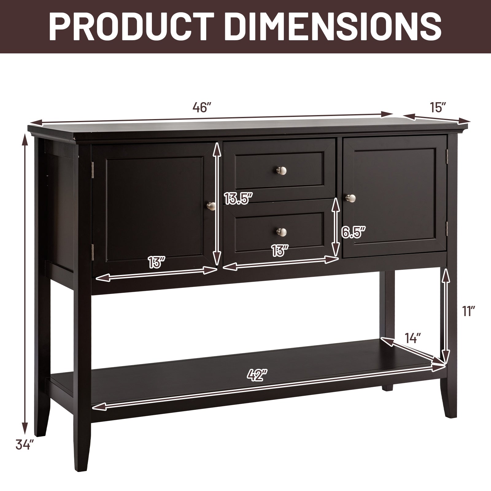 Multi-purpose Usage: This versatile piece functions as a console table, sideboard, buffet table, entry table, or even as a couch table. Its compact yet functional design is perfect for kitchens, bedrooms, hallways, living rooms, offices, or any room where storage and style are needed.