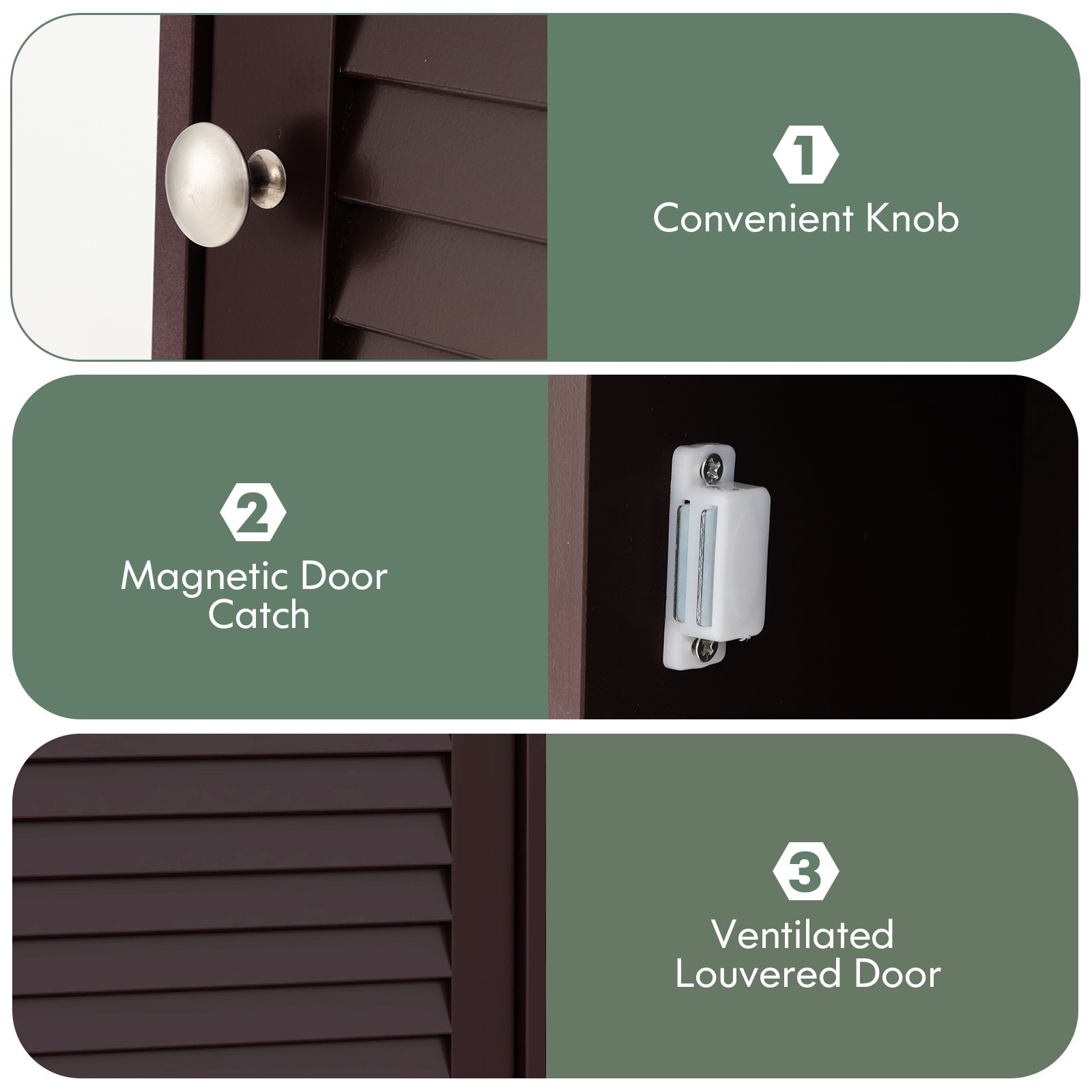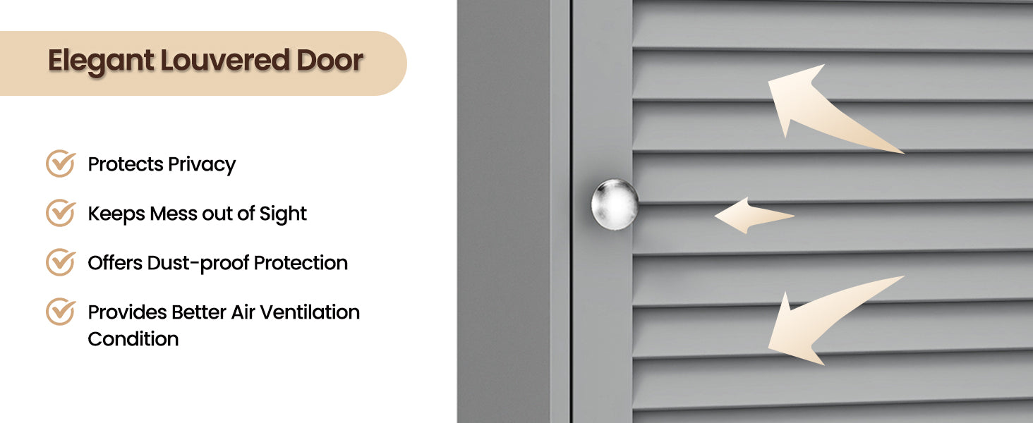 Moisture Proof and Durable: Made from MDF with a smooth, moisture-resistant coating, this cabinet is perfect for humid environments like bathrooms. The louver door design promotes air circulation while keeping your items organized and dust-free.