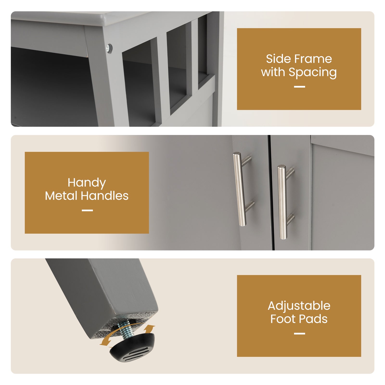 Modern Wooden Kitchen Storage Cabinet with Double Doors and Open Shelf - Grey