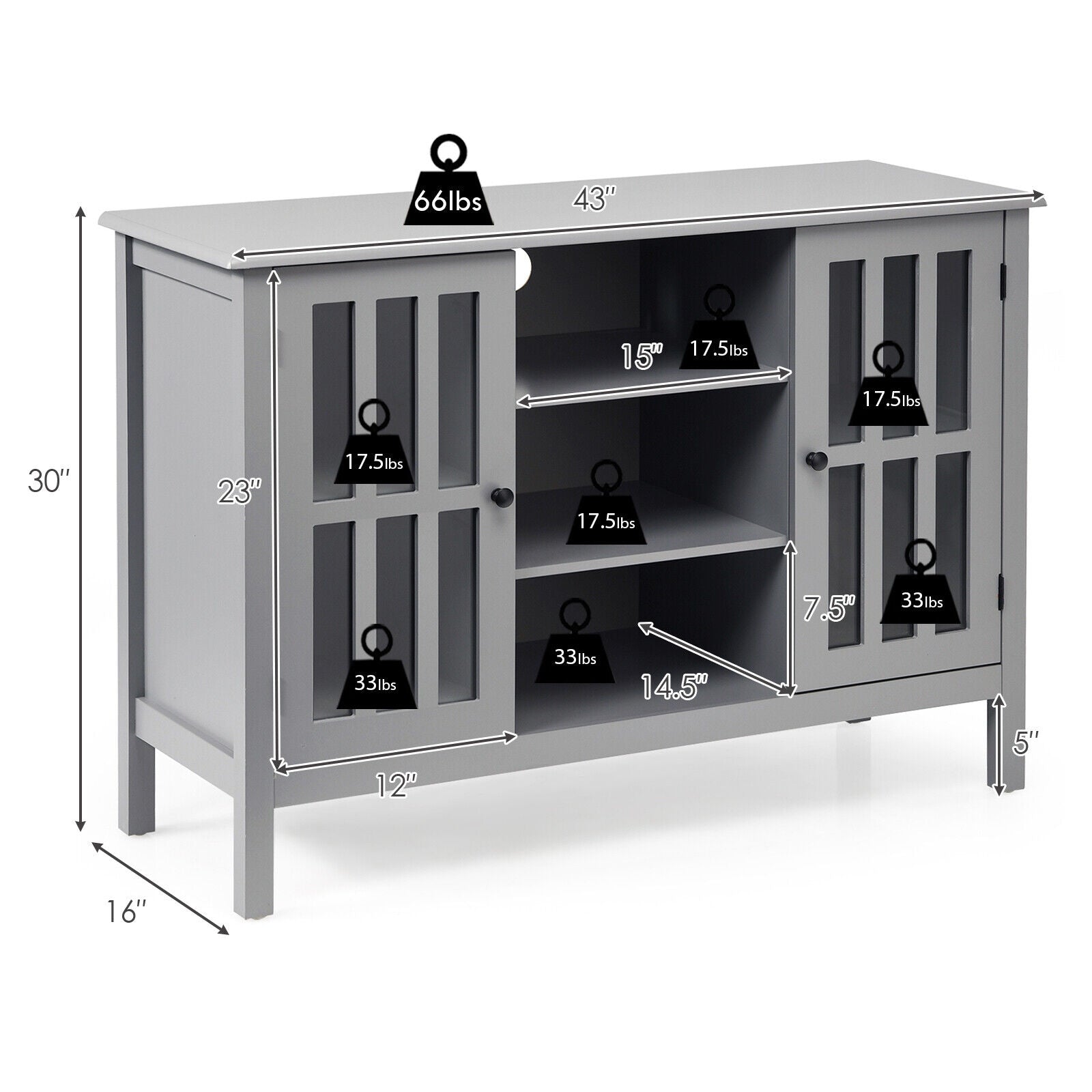 Overall Size: 43" x 16" x 30" (L x W x H)
