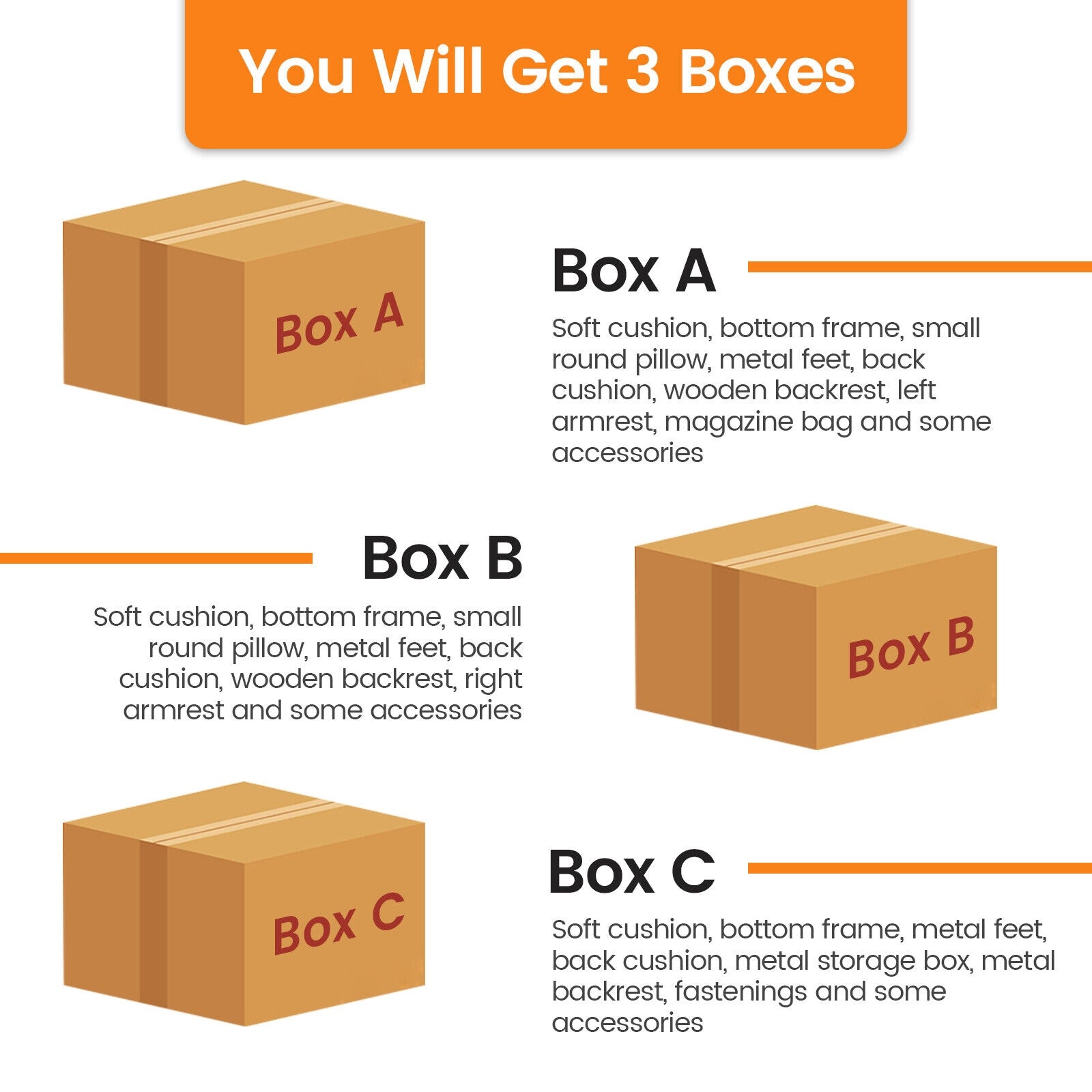 Unique Design with USB Ports, 3-Hole Socket and Hidden Storage Box: This sofa features a robust steel backrest that connects securely to the frame using fixing knobs. Behind the back cushion, there is a hidden storage box for discreet organization. USB ports and a 3-hole socket provide convenient charging options for your devices while relaxing.