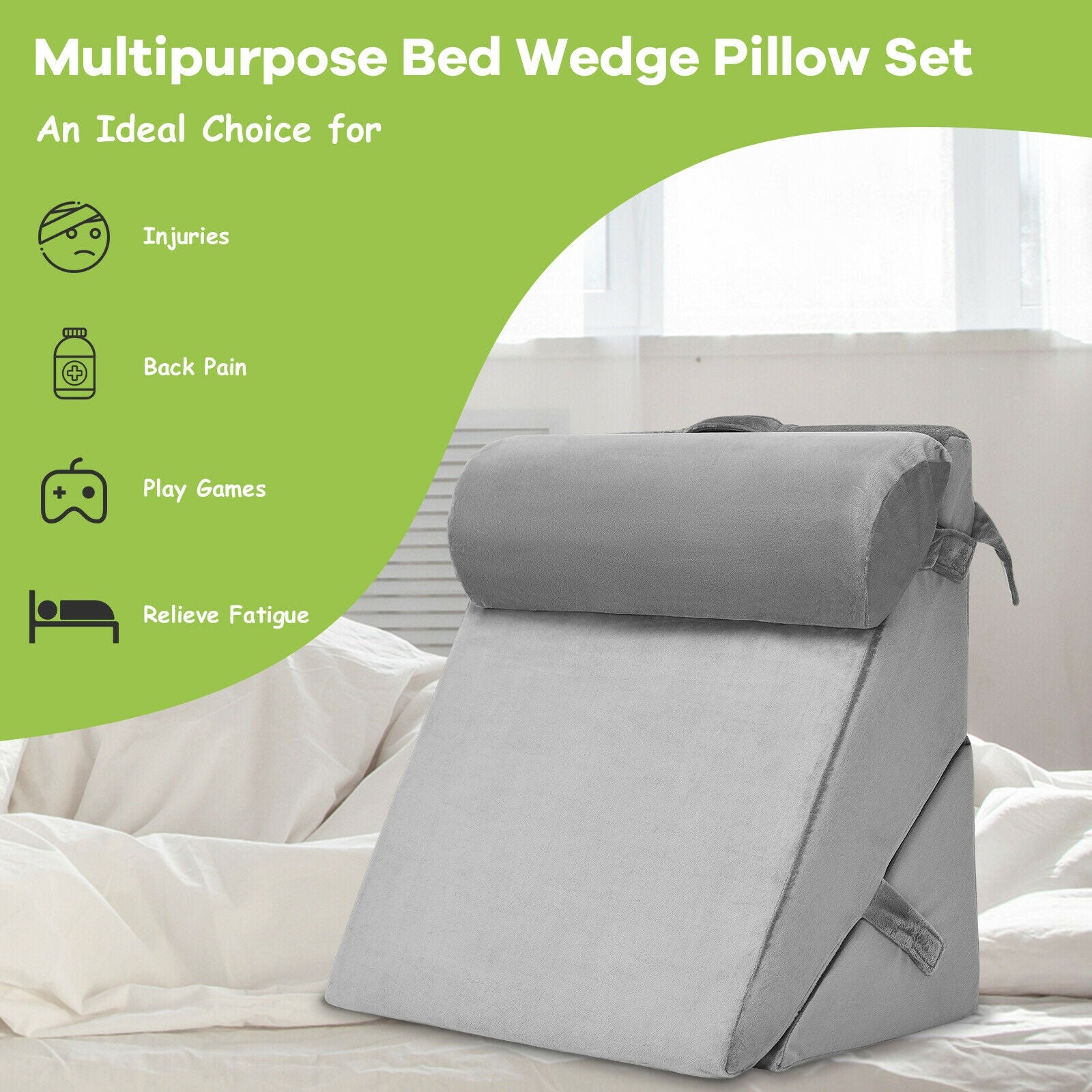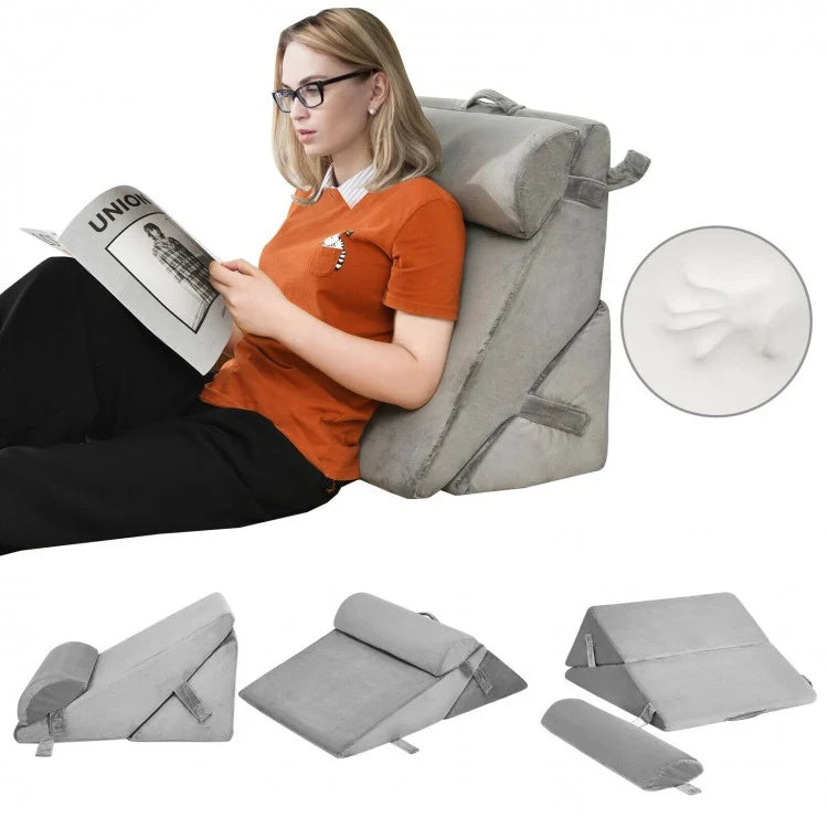 Multipurpose Adjustable Memory Foam Wedge Pillow with Neck & Back Support – Grey