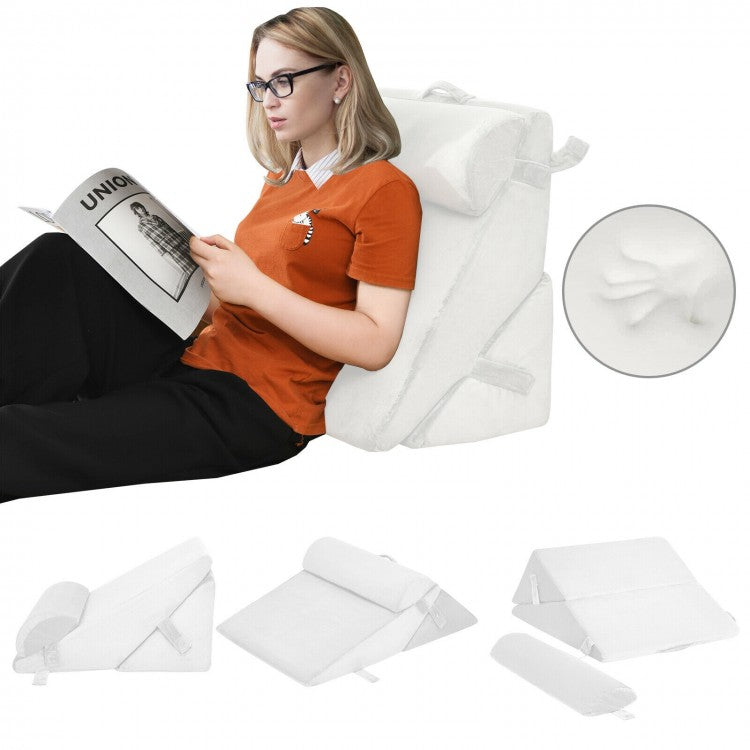 Looking for the perfect pillow set for reading, lounging, or relaxing? This versatile wedge pillow set is designed to provide comfort and support in multiple positions. Filled with high-density memory foam, it offers a soft, resilient feel that molds to your body. The adjustable headrest and removable cover make it a customizable and easy-to-maintain solution for all your relaxation needs. Whether you're reading in bed, watching TV on the couch, or resting on the floor, this wedge pillow set is perfect for all occasions.