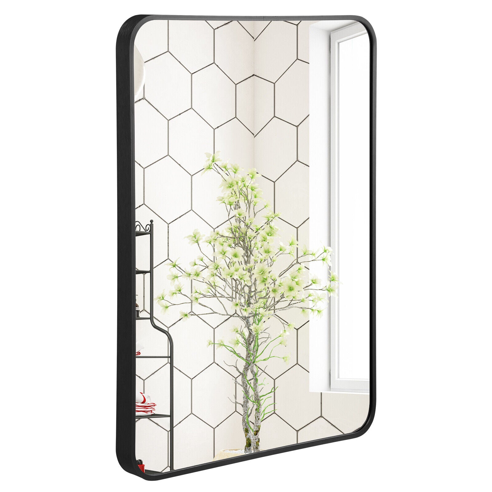 Enhance your daily routine with this elegant rounded rectangular wall mirror. Crafted from premium glass and framed with a rustproof aluminum alloy border, this mirror is designed to last. It offers versatility with the option to hang it either vertically or horizontally, and the shatterproof glass ensures added safety for your family. The sleek design, combined with rounded corners, provides both style and security, making it a perfect addition to your bathroom, bedroom, or living room.