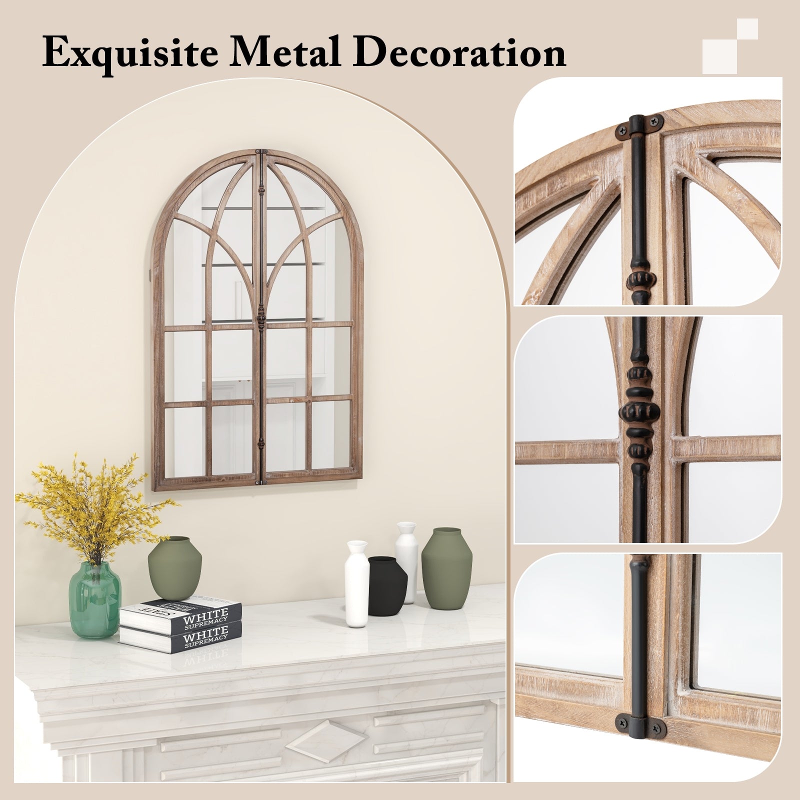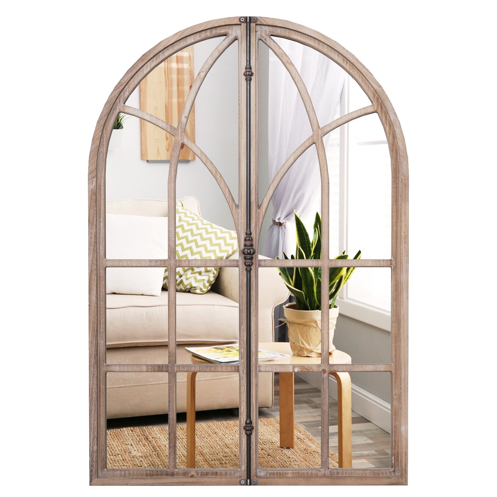 Rustic Arched Window Pane Wall Mirror for Living Room & Entryway Décor