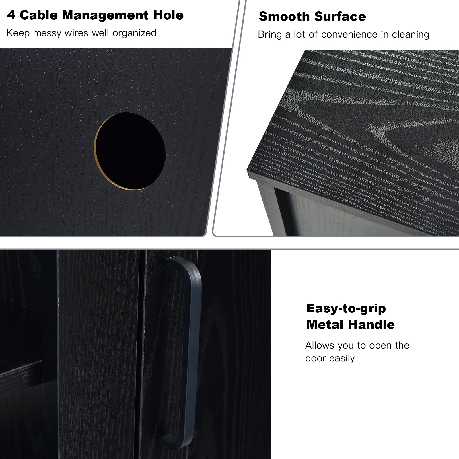 Cable Management Hole and Humanized Details: Equipped with four cable management holes at the back, the stand helps keep your electronic cords neat and untangled. Metal handles on the cabinet doors are ergonomically designed for easy gripping, allowing smooth and convenient access to the interior.
