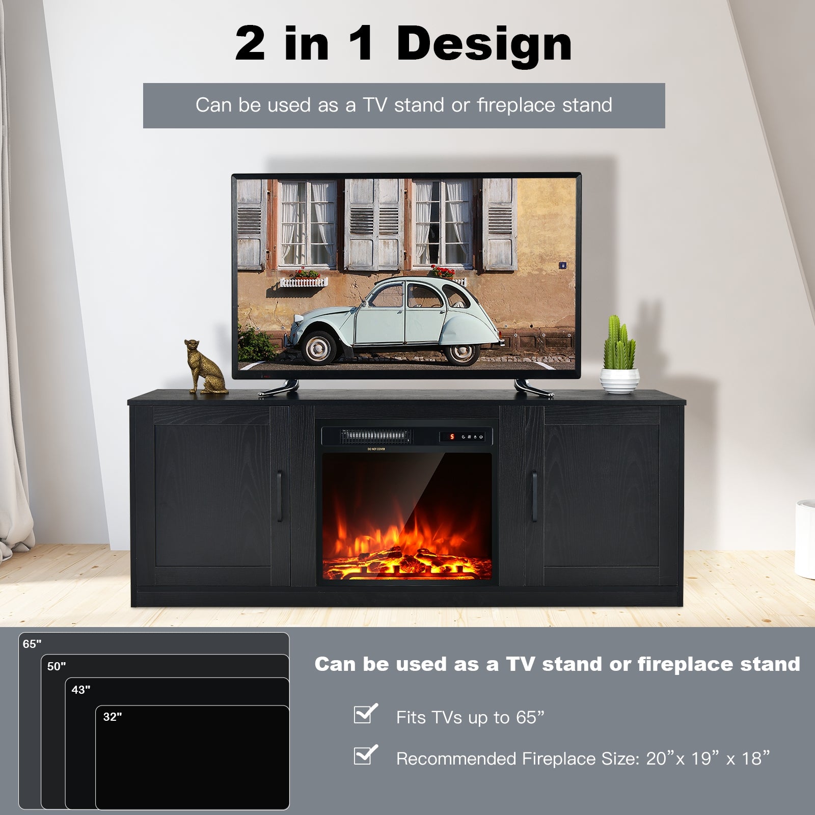 Rustic Entertainment Center for TVs up to 65 Inch with Cabinets and Fireplace Slot 58 Inch - Black