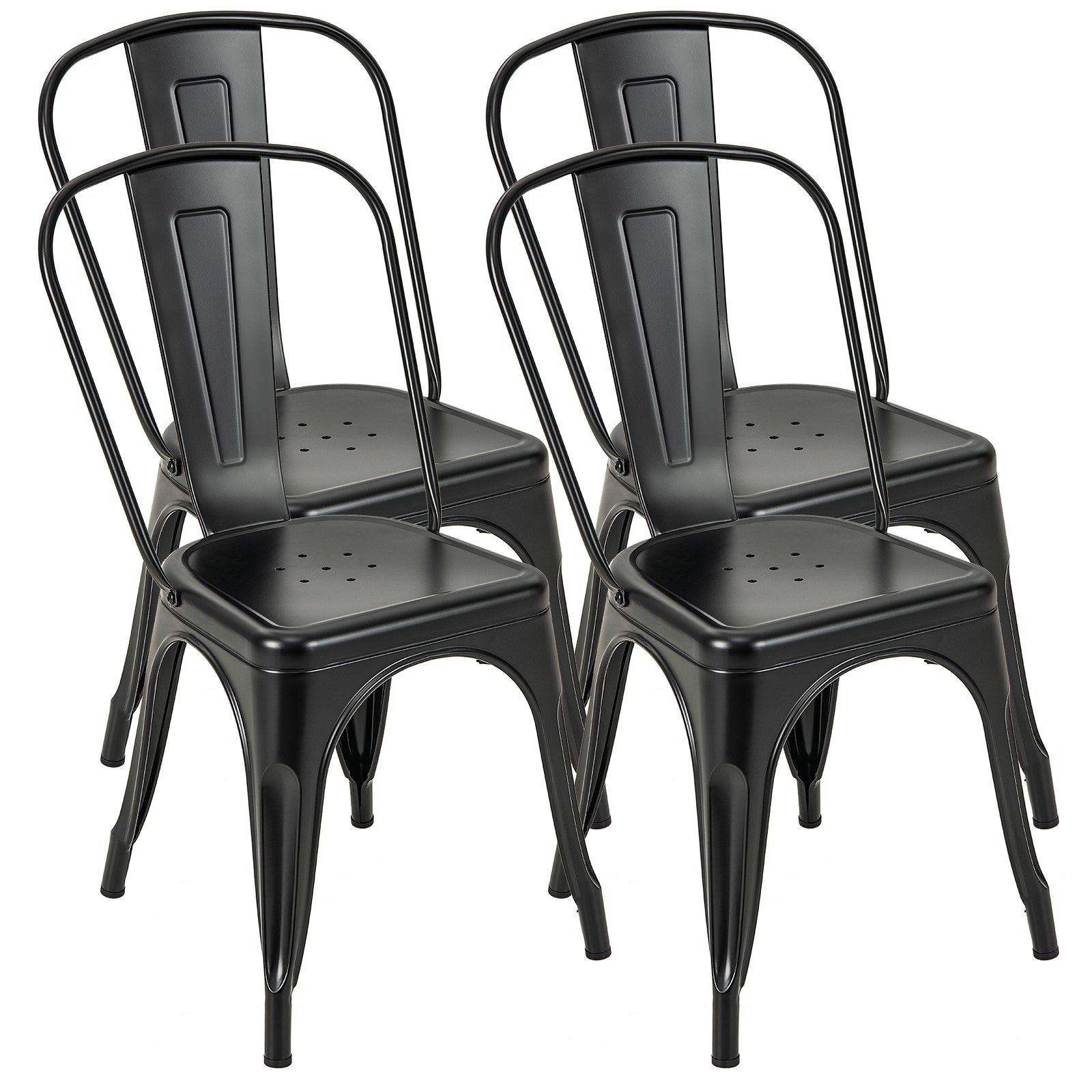 Set of 4 Stackable Metal Dining Chairs with Ergonomic Backrest - Black