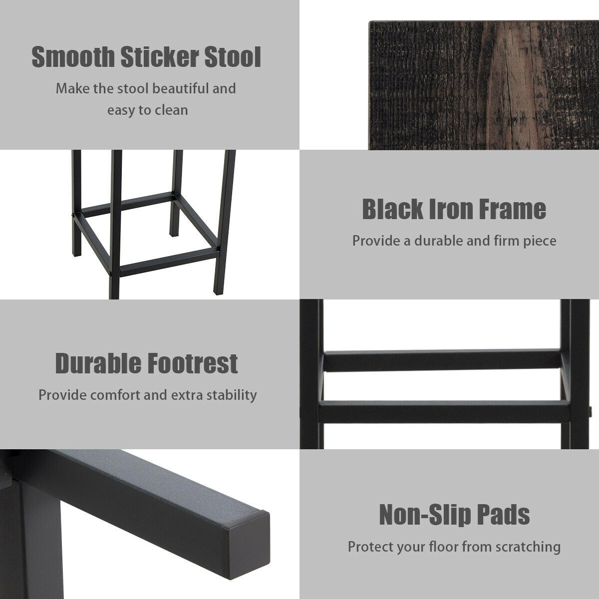 This bar stool features a strong iron frame that supports up to 330 lbs, combining durability with sleek vintage style. Its premium engineered wood seat is smooth, eco-friendly, and easy to clean, offering a comfortable sitting experience. Designed with non-slip mats and convenient footrests, it ensures both stability and comfort. With a compact design and easy assembly, this stool is perfect for various spaces like homes, kitchens, bars, and restaurants, effortlessly adding a touch of charm to any setting.