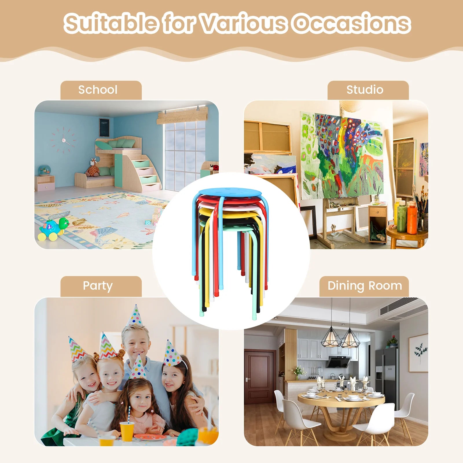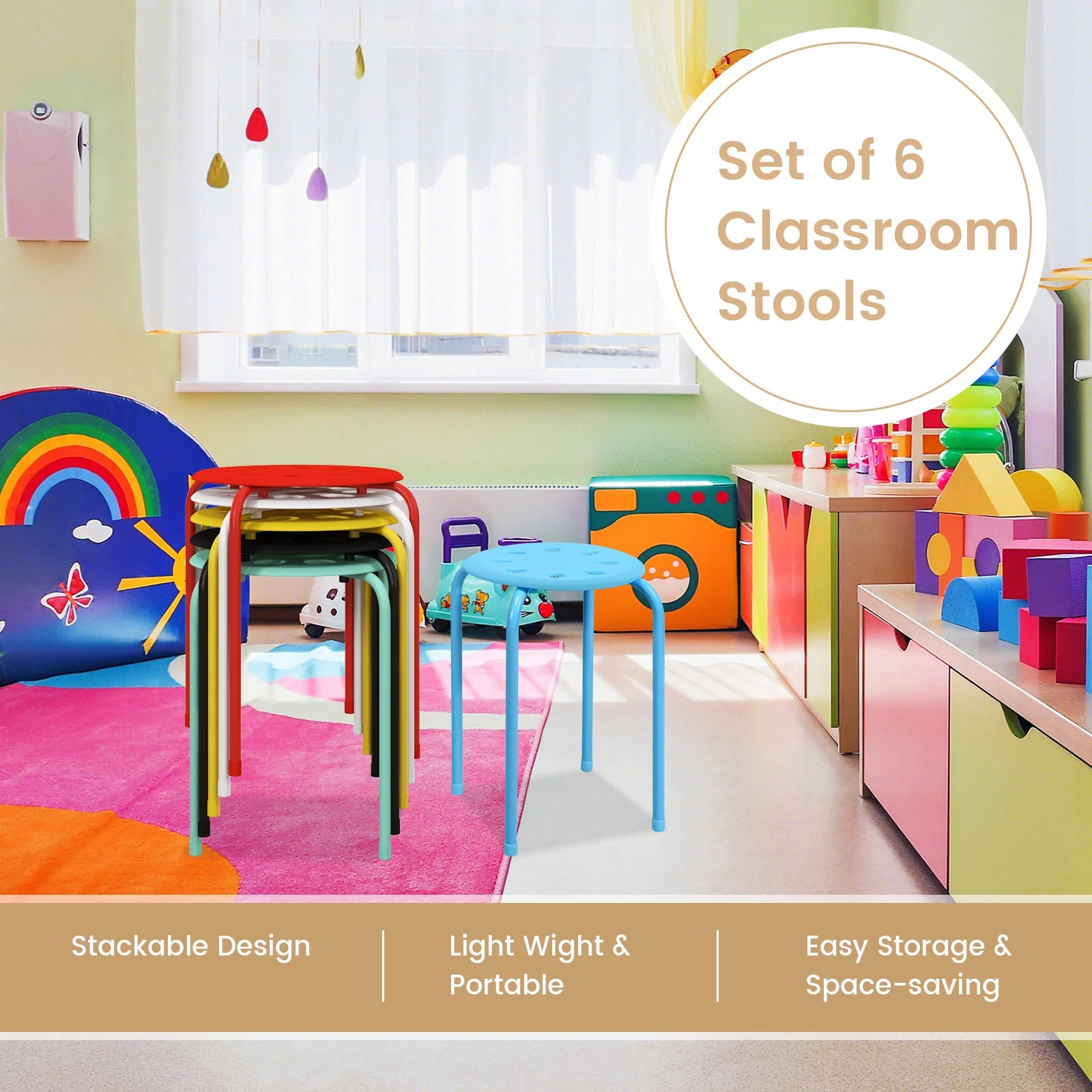 Set of 6 Stackable Plastic Stools for Dining, Office, Kitchen and More - Multicolor