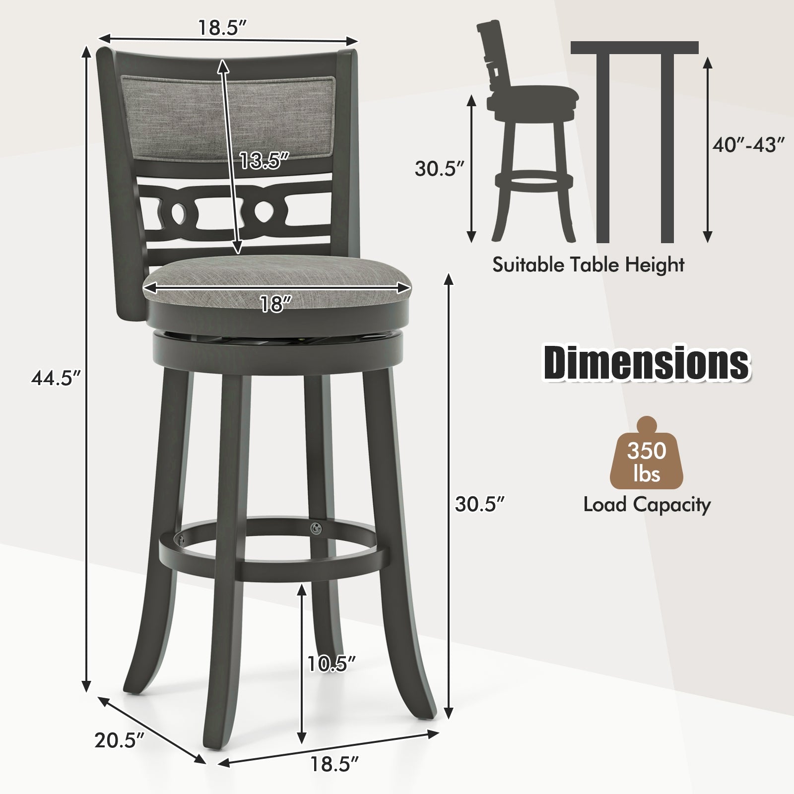Swivel Bar Chair Set of 1 or 2 with Wooden Frame and 30.5" Seat Height for Pub or Kitchen