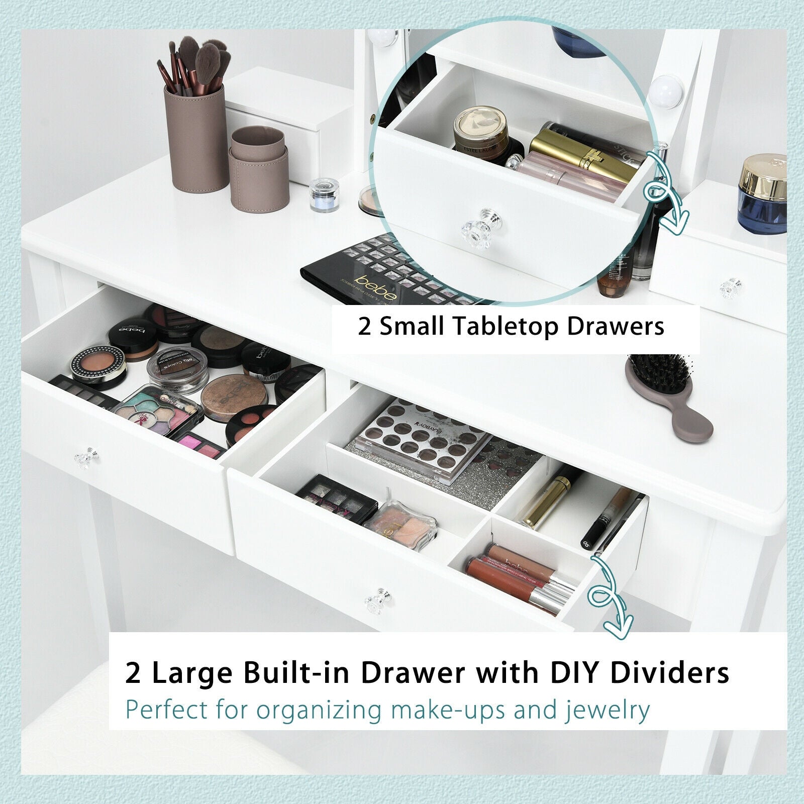 Vanity Table Set with Lighted Mirror and Storage for Bedroom and Dressing Room - White
