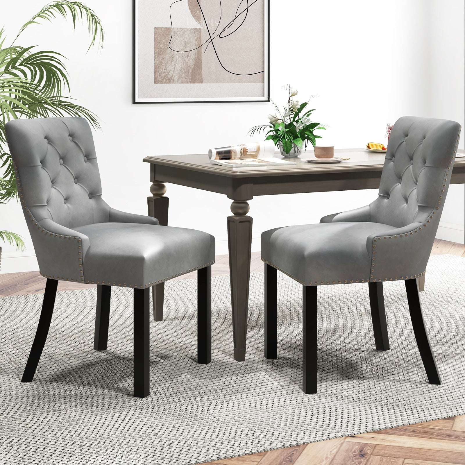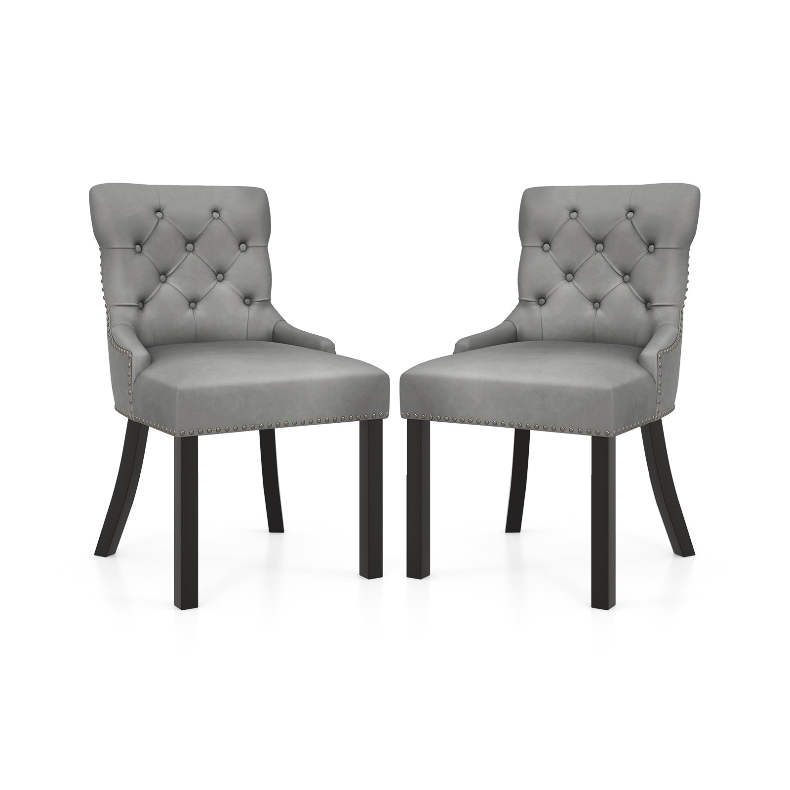 Velvet Tufted Wingback Dining Chairs with Rubber Wood Legs – Set of 2, Grey