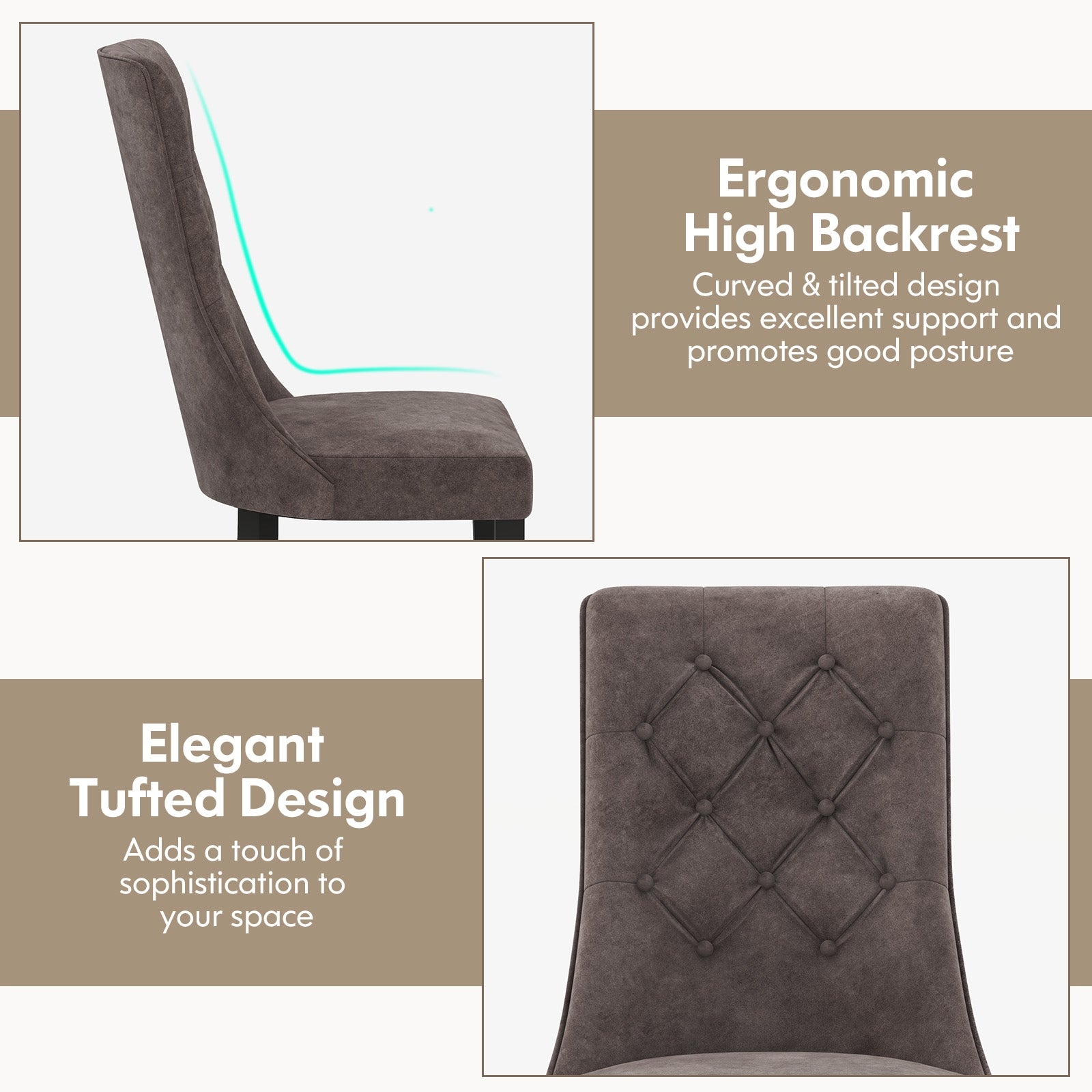 Designed to bring sophistication and comfort to your space, this set of upholstered dining chairs combines elegant tufted detailing with supportive design. Crafted with plush velvet upholstery and filled with thick sponge padding, each chair features a high ergonomic backrest and sturdy rubber wood legs reinforced with a triangular structure for stability. These versatile chairs are ideal for dining rooms, living rooms, reception areas, or upscale commercial settings.