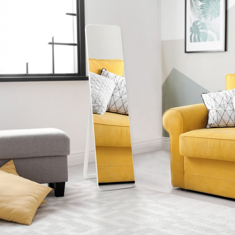 This elegant full-length mirror combines durability and modern design, perfect for any room in your home. With a solid wood frame, explosion-proof glass, and a versatile U-shaped bracket, it offers a high-definition reflection while ensuring safety and stability. Whether placed on the floor or mounted on the wall, this mirror enhances the aesthetic of your living room, bedroom, or dressing room while saving valuable space.