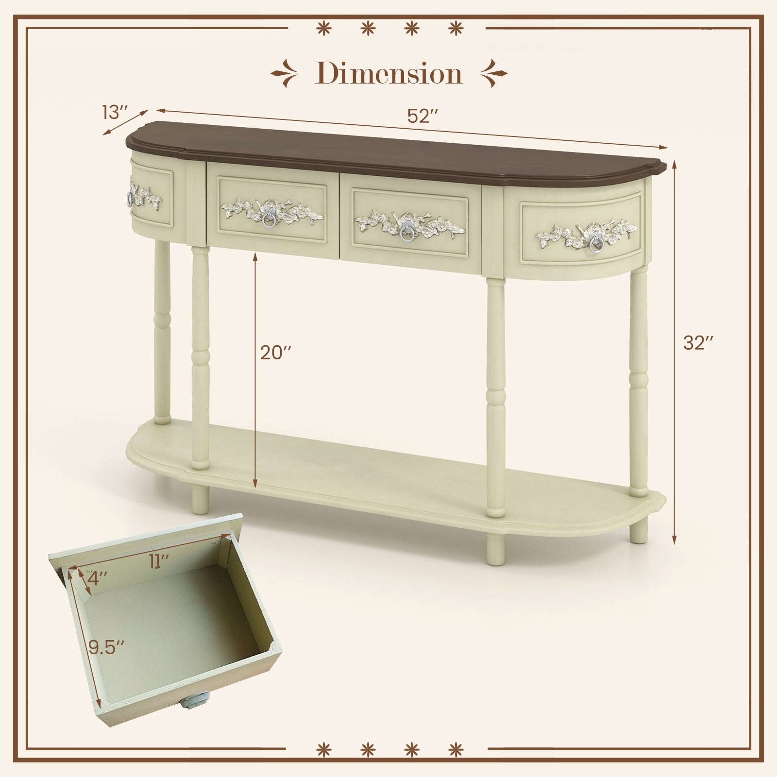 Overall Dimension: 52" x 13" x 32"