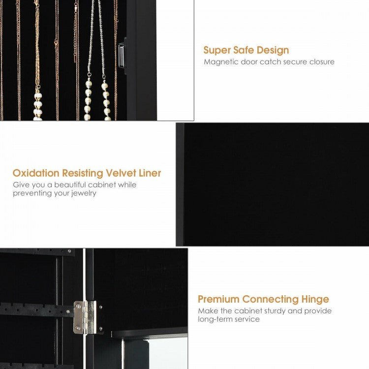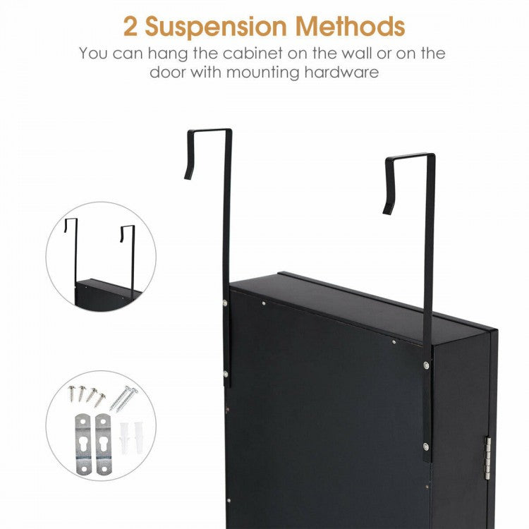 Wall and Door Mounted Jewelry Cabinet with Mirror and Storage Shelves – Black