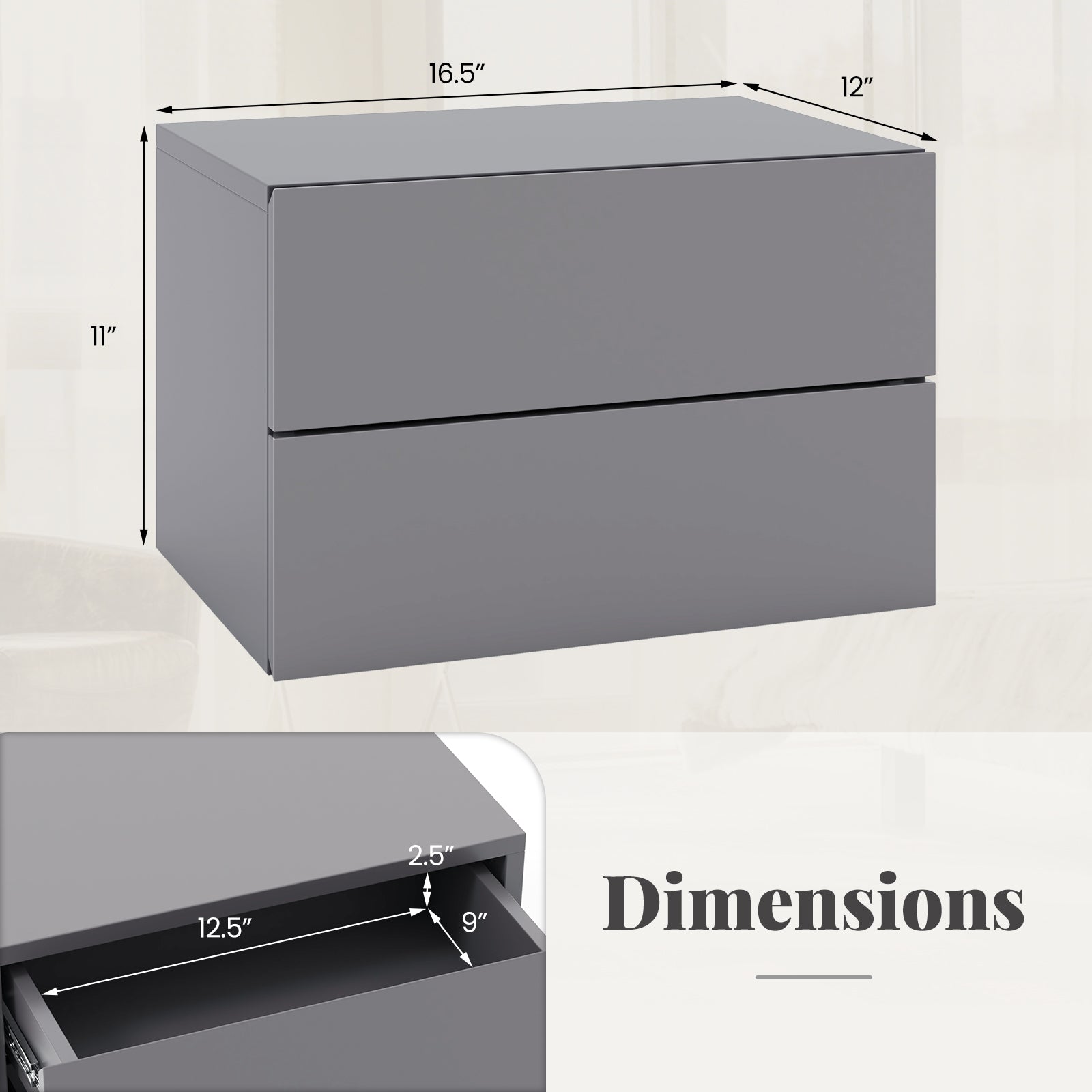 Wall Mounted Nightstand with 2 Drawers and Storage Shelf in Grey