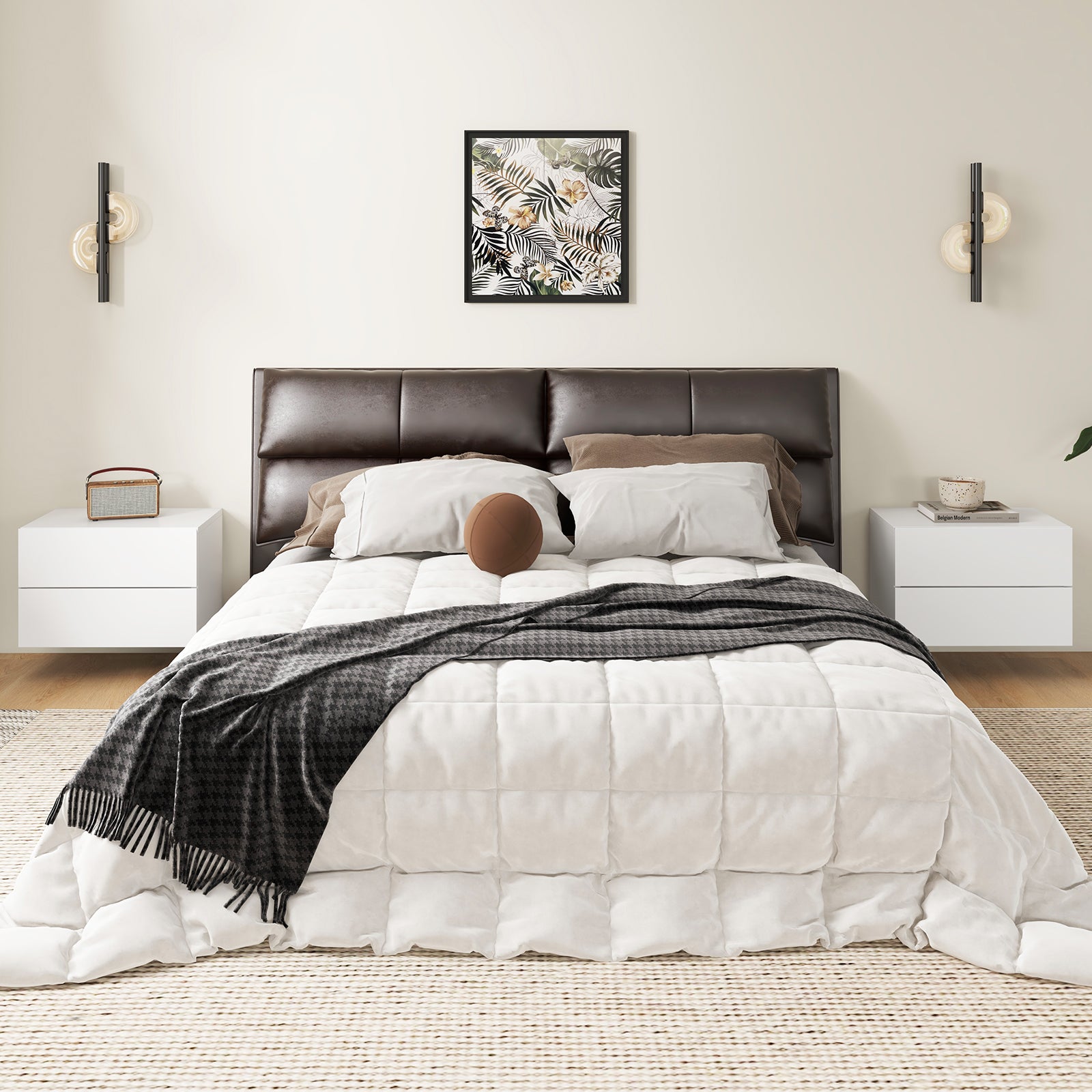 Wall-Mounted Space-Saving Design: The bedside table features a floating design that mounts to the wall, saving valuable floor space and allowing easy cleaning underneath. It can be installed at any height to suit your needs.