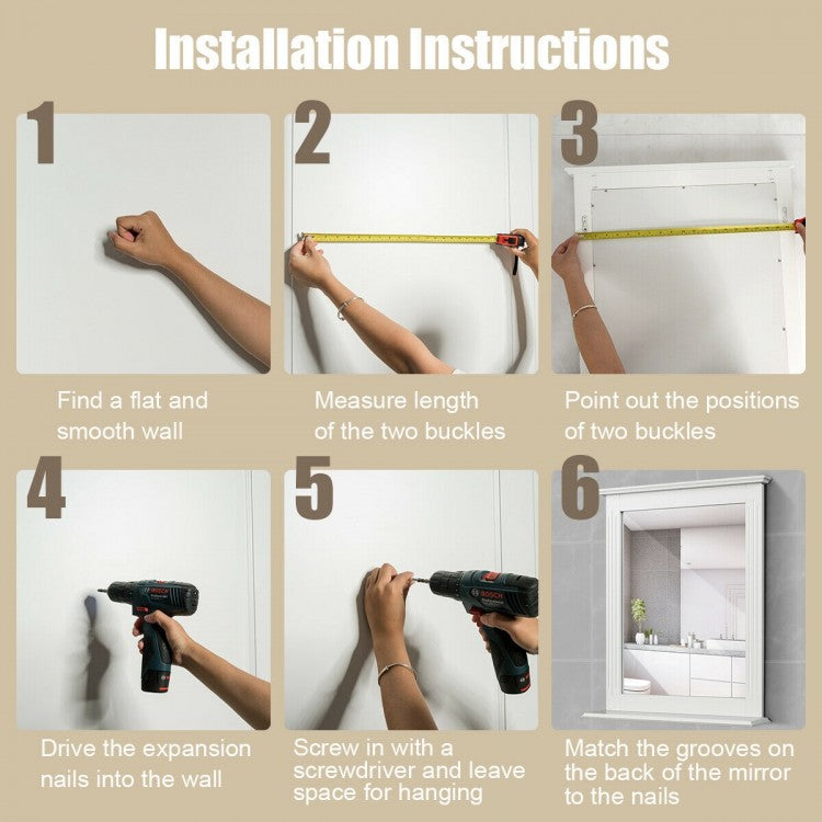 Wall-Mounted Vanity Mirror with Shelf for Storage and Elegant Design - White