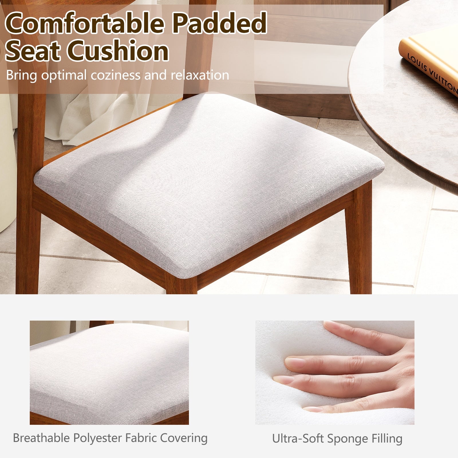 Wide Padded Seat Wooden Dining Chairs with Sturdy Rubber Wood Frame Set of 2