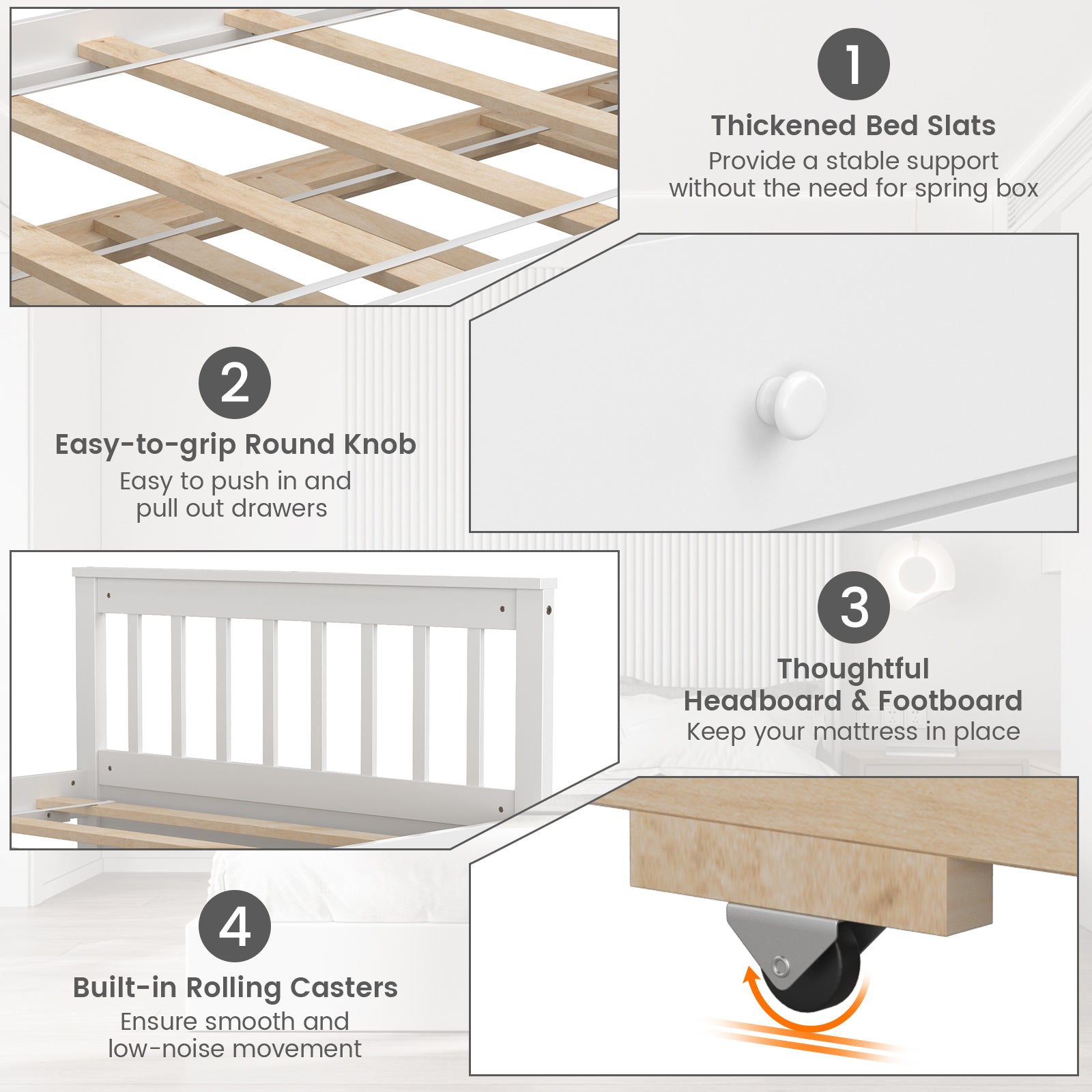 Wood Twin Captain’s Bed with Trundle and Three Storage Drawers for Kids or Guest Room White