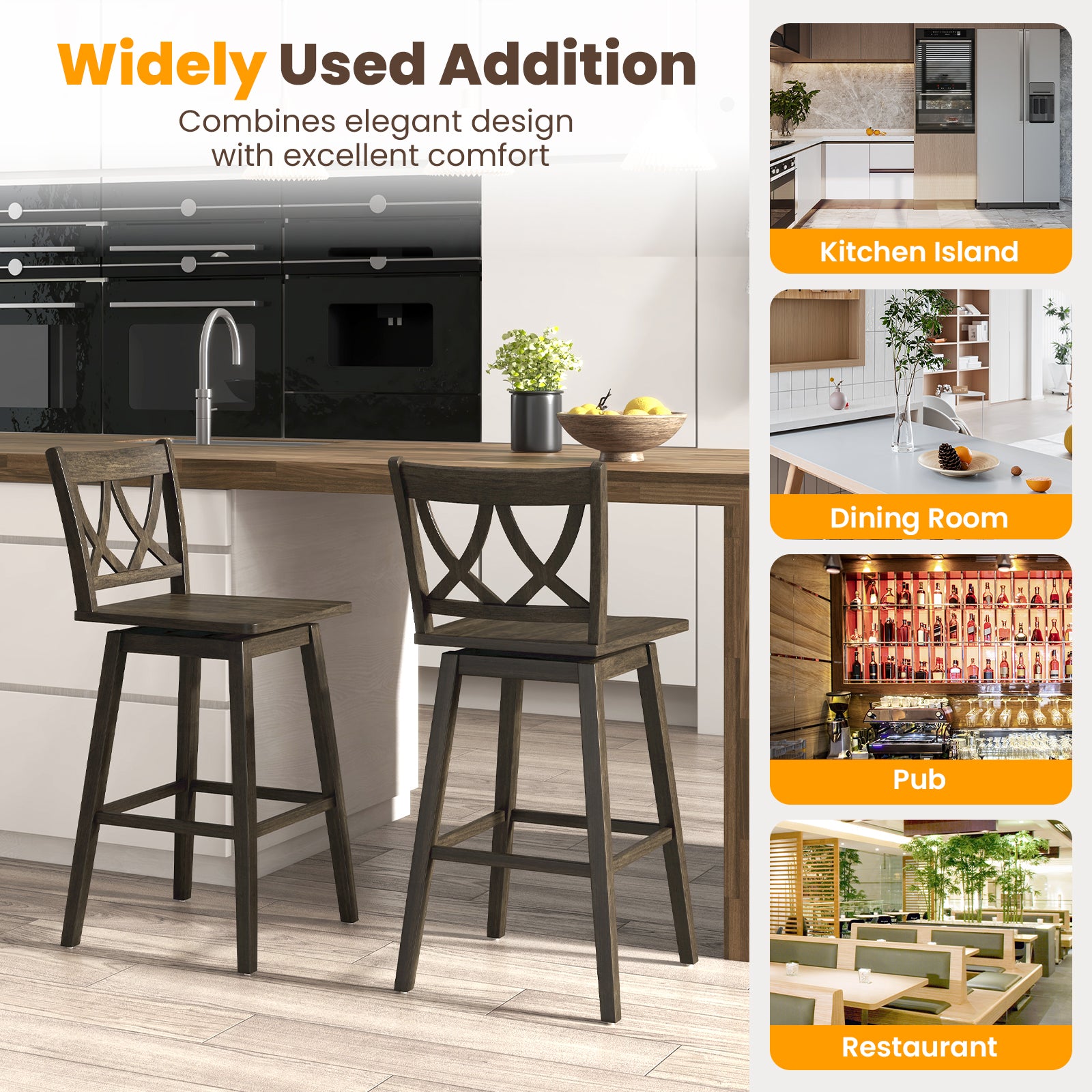 Wooden Bar Stool Set of 2 with Durable Rubber Wood Frame and Swivel Seat - 29 Inch