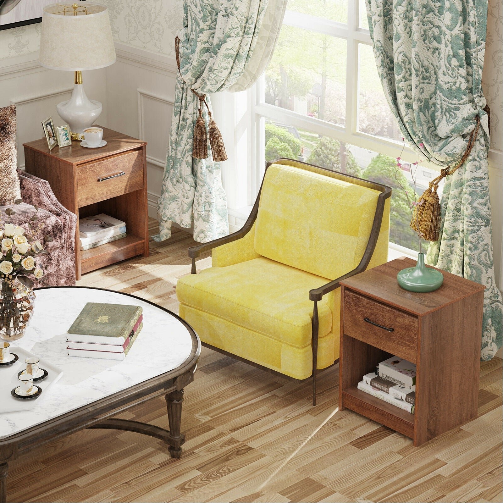 This versatile wooden nightstand offers a perfect combination of rustic charm and functional design. Built with a sturdy engineered wood structure and supported by non-slip foot pads, it ensures stability and durability in everyday use. Featuring a spacious tabletop, a smooth-gliding drawer, and a lower open compartment, this side table provides ample storage for personal items, decorative pieces, and daily essentials. Ideal for bedrooms, living rooms, offices, and more, its compact footprint fits neatly into various spaces while enhancing the overall decor.