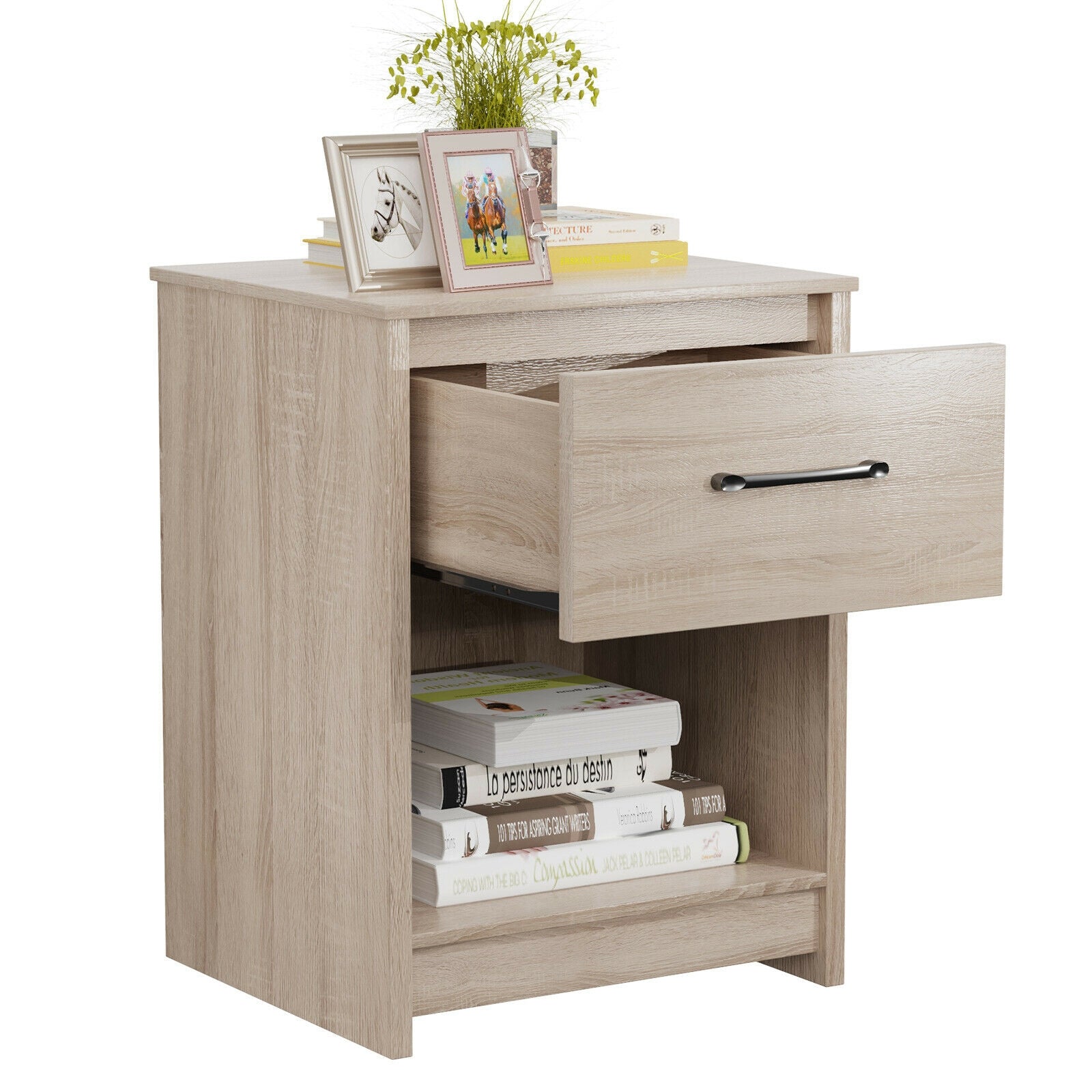 This versatile wooden nightstand offers a perfect combination of rustic charm and functional design. Built with a sturdy engineered wood structure and supported by non-slip foot pads, it ensures stability and durability in everyday use. Featuring a spacious tabletop, a smooth-gliding drawer, and a lower open compartment, this side table provides ample storage for personal items, decorative pieces, and daily essentials. Ideal for bedrooms, living rooms, offices, and more, its compact footprint fits neatly into various spaces while enhancing the overall decor.
