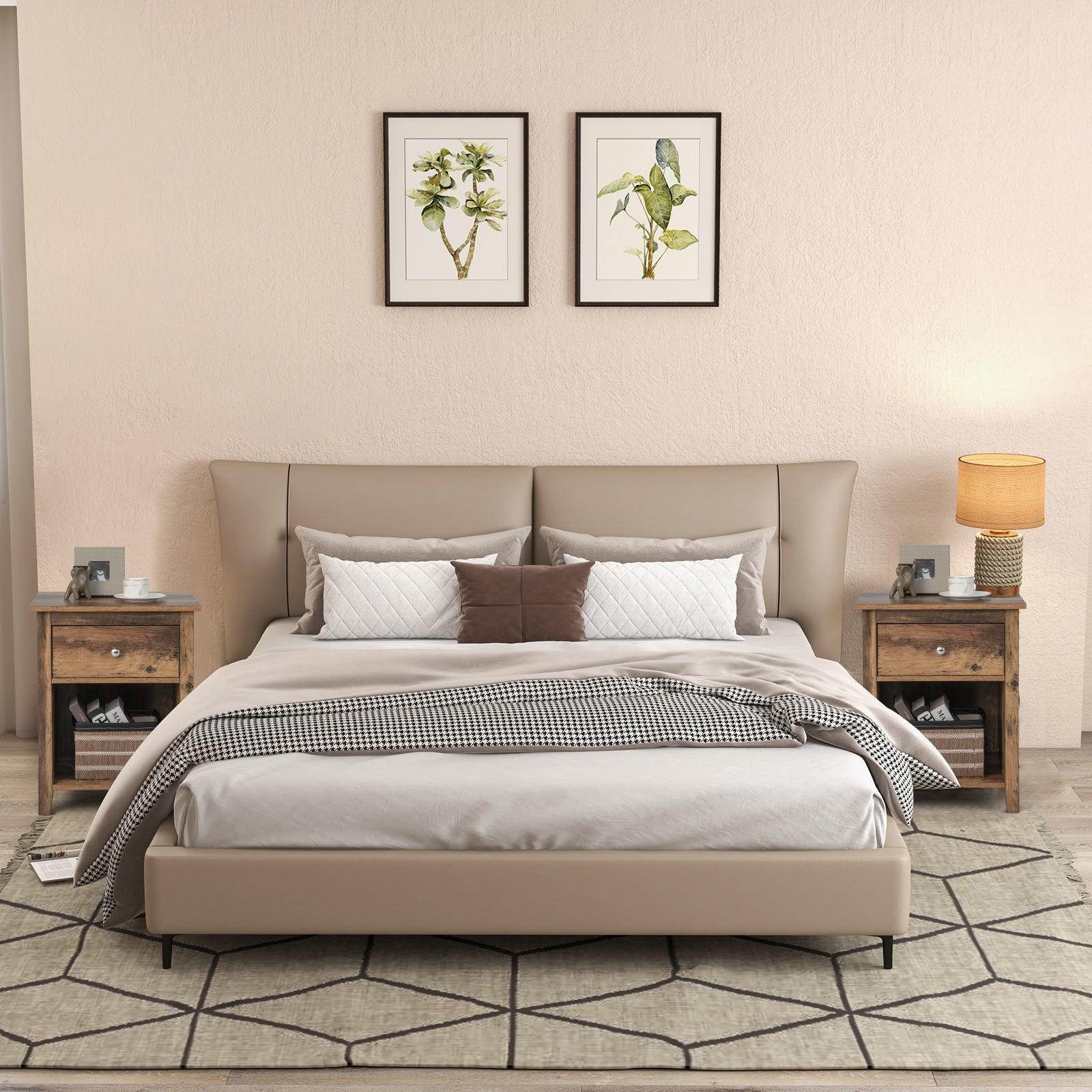 Multiple Storage Options: The nightstand features a wide tabletop for displaying lamps, photos, and books. The open shelf provides quick access to essentials, while the pull-out drawer offers concealed storage for smaller personal items, keeping your space neat and tidy.